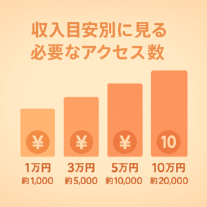 でも、「アクセス数がどのくらいあれば収入になるのか」という具体的な目安がわからないと、モチベーションを保つのも難しいですよね。